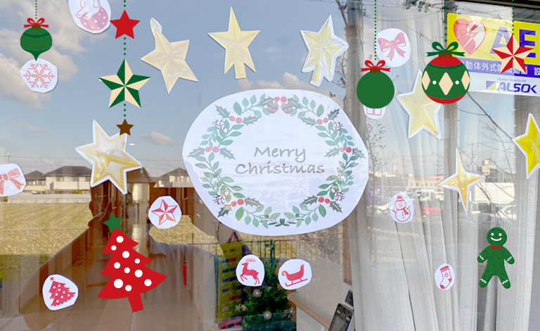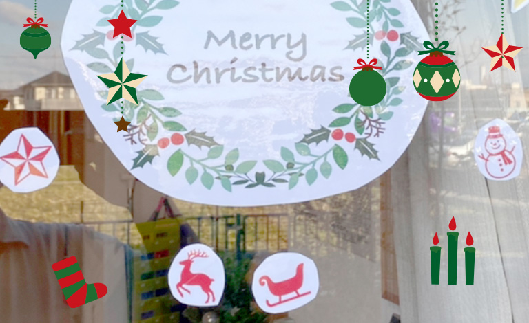 季節の便り「アイリス倶楽部初芝」より season 2021.12.07 季節の便りお知らせ 12月の便り アイリス倶楽部初芝 アイリス倶楽部初芝のクリスマス飾りは、トナカイや雪だるまも登場して、とてもかわいく仕上がりました。 窓もかわいくデコレーション! ズームすると細かいところまで丁寧に描かれていますね! クリスマスツリーは、シンプルでエレガントに!