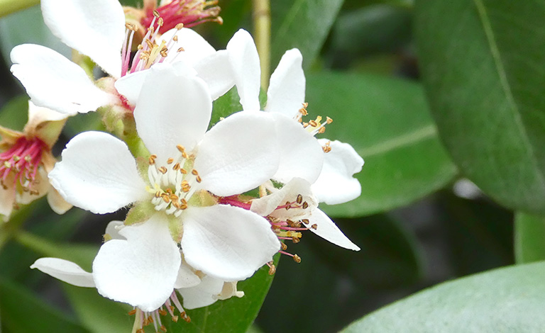 季節の便り「夢の里」より season 2022.05.24 季節の便りお知らせ 5月の便り 夢の里 夢の里の施設の植栽にシャリンバイという樹木が植わっています。 玄関前でお花が咲いています。 白くてかわいいお花ですね。 シャリンバイは暑さにも強い常緑性の花木で、5~6月ごろにお花を咲かせるそうです。