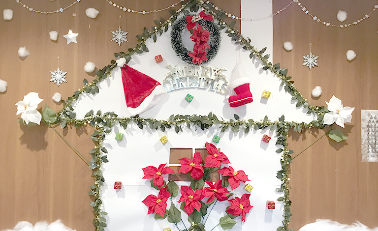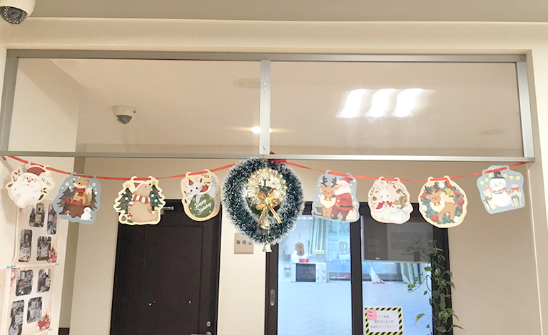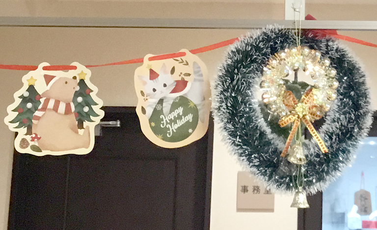 ケヤキ倶楽部越谷ではクリスマスのデコレーションが施されています。