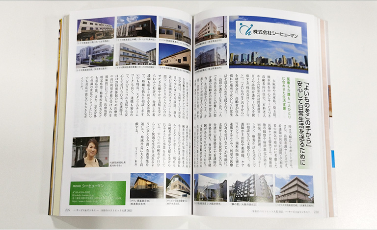 「令和のベストヒット大賞2023」に記事が掲載されました! information 2023.09.08 お知らせ 令和のベストヒット大賞2023 ミスター・パートナーの令和のベストヒット大賞2023という書籍にシーヒューマンの記事が掲載されました。 令和のベストヒット大賞 こちらのページにシーヒューマンの記事が載っています。 カラー2ページです。