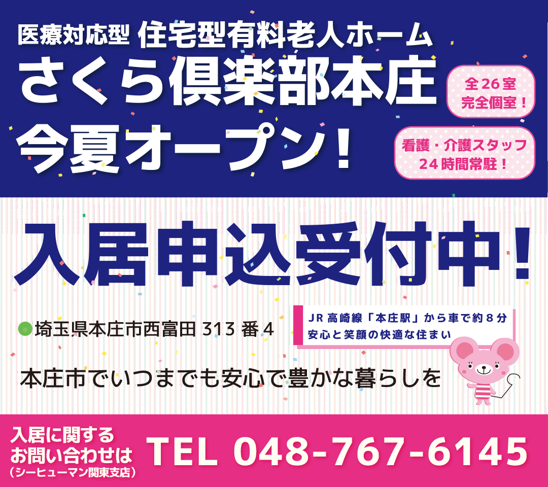 さくら倶楽部本庄 入居受付中!スタッフ募集中!