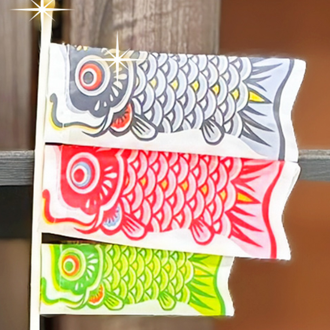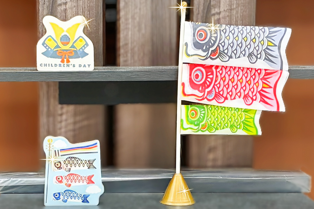 こちらは立体的な鯉のぼり、金太郎さんに兜と柏餅♪